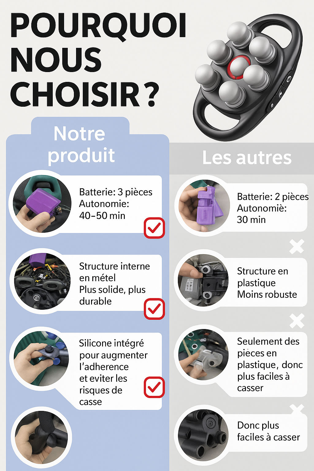 Plusieurs têtes de massage – Comprend des embouts interchangeables pour un soulagement ciblé.